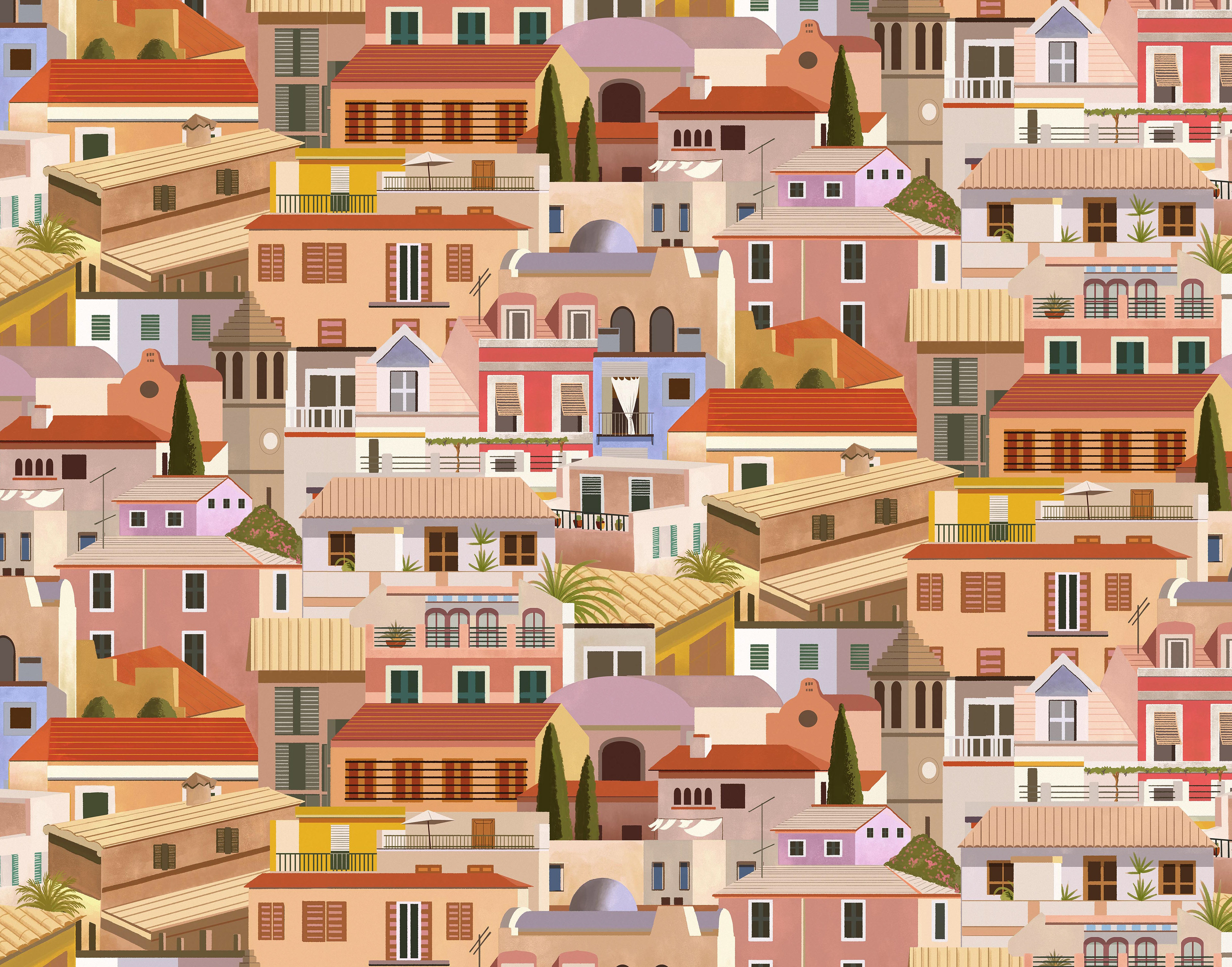 Mediterranean houses rapport for Mallorca collection of Coordonné wallpapers